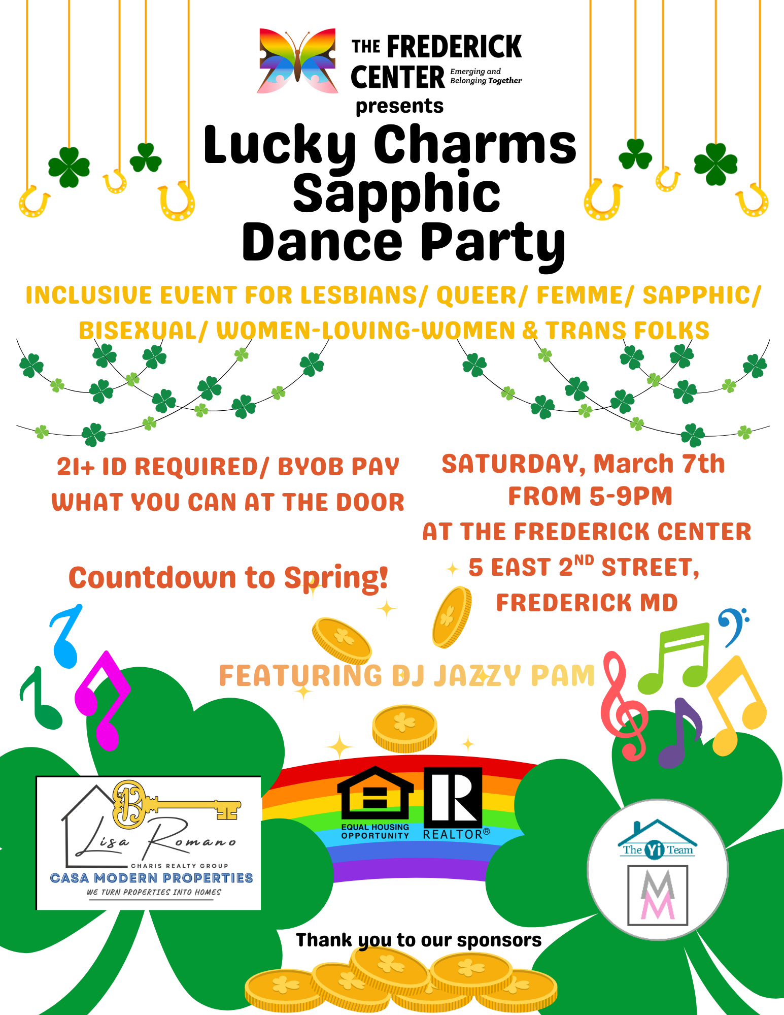 Lucky Charms Sapphic Dance will be on March 7th! This is a free, 21+ inclusive event for lesbians, queer folks, femme people, sapphic-identifying individuals, women-loving-women! Join us to dance along to spins by DJ Jazzy Pam!