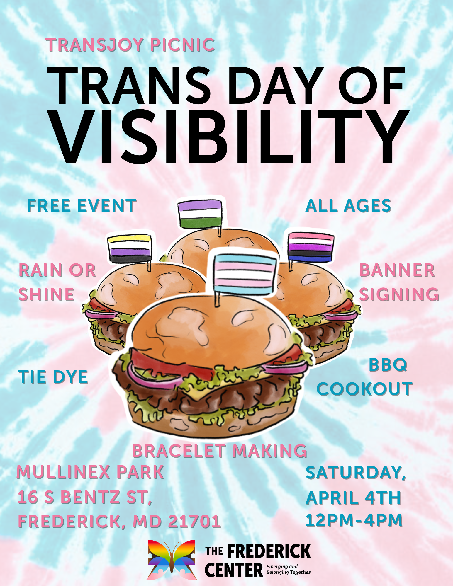 The Frederick Center organizes the annual Frederick Pride celebration. Pride provides an environment for LGBTQ+ people, allies, and families to interact and celebrate LGBTQ+ pride. It serves as the means to coordinate the actions of our community for the coming year. Frederick Pride started in 2012 with an attendance of about 300, and it surpassed 30,000 in 2023. Frederick Pride 2025 will be held on Saturday, June 28th from 11:00am – 6:00pm!