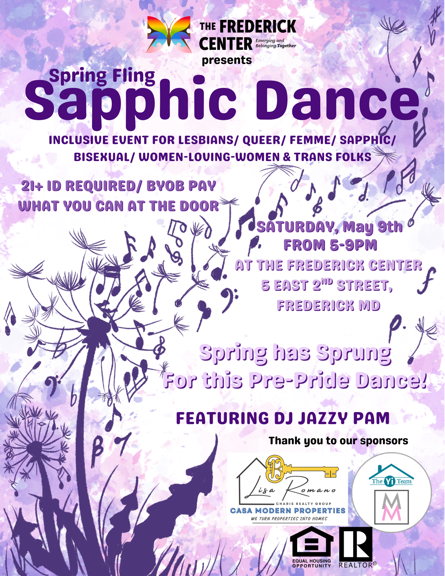 Sapphic Dance, Spring Fling will be on Saturday, May 9th from 5-9pm! Dance in a safe and affirming space with fellow women-loving-women! We'll see you there!
